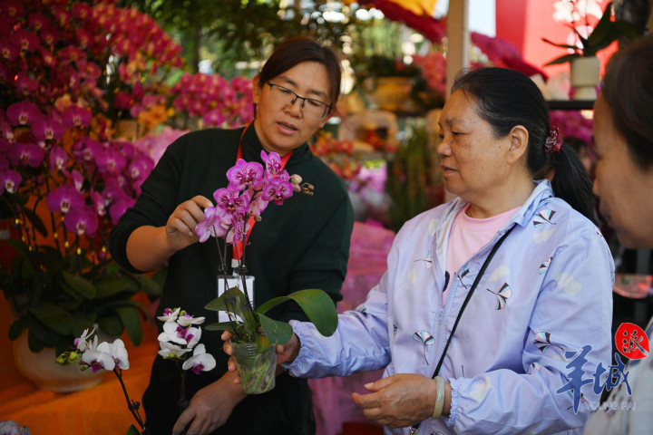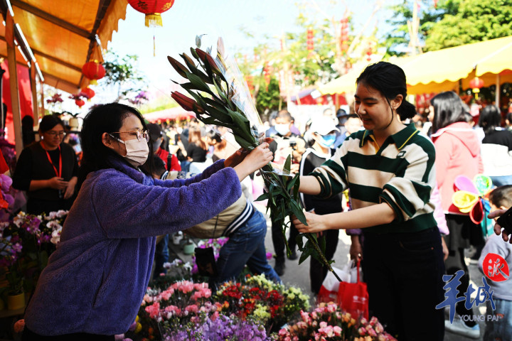 “今年的年花种类很多,而且品质特别高。”陈女士说,她在广州生活10年,逛花市、买年花已经成为每年过年的仪式感,“今天天气特别好,现场很热闹,一下就有过年的气氛了。”